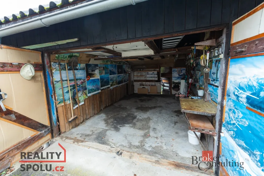 K bytu náleží kolna a dva sklepy. Možnost pronájmu garáže/dílny s parkováním před garáží. Roční pronájem je ve výši pouhých 109 Kč. Garáž je průchozí k posezení a má přímý vstup do lesa. Část pozemku/lesa za garáží náleží majiteli a je taktéž součástí prodeje.