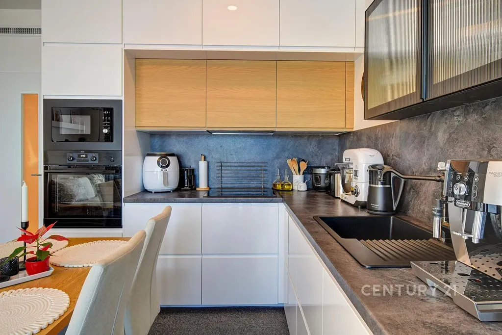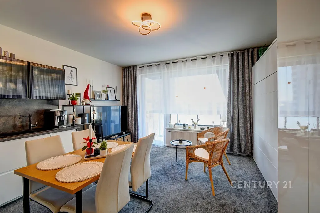 Moderní kuchyňská linka, kvalitní materiály, sofistikovaně řešené úložné prostory a perfektní technický stav zaručují bezstarostné bydlení bez dalších investic. O optimální klima po celý rok se stará rekuperace, díky kterému je v bytě stále čerstvý vzduch.