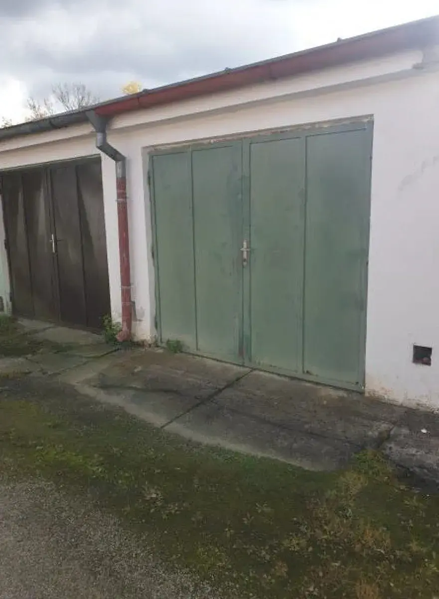 Jedná se o řadovou vnitřní, přízemní garáž, zděné konstrukce, s plochou střechou a plechovými vraty.