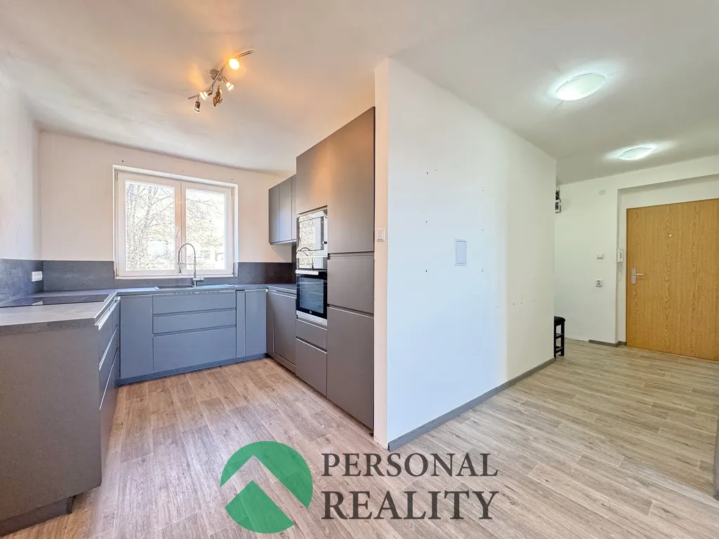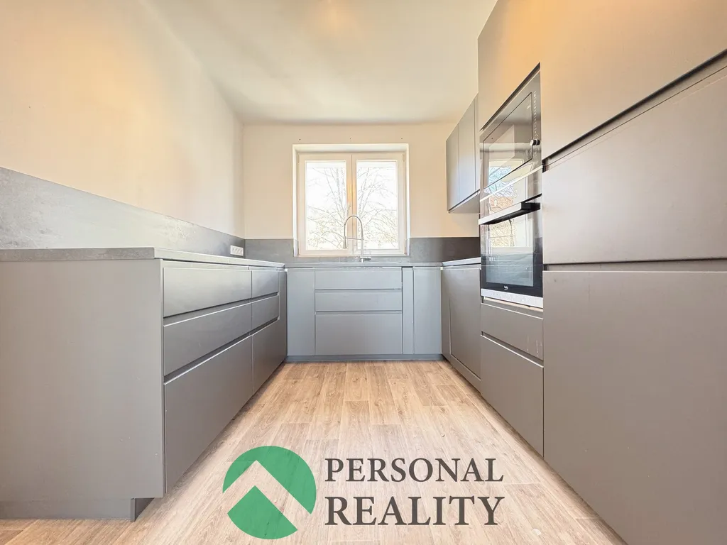 - Prostorná kuchyň s moderní šedou linkou (mat, žádný lesk z devadesátek )