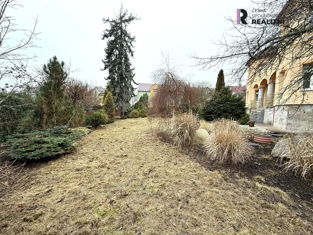 Zahrada byla navržena zahradním architektem a nabízí klid i soukromí. Součástí je podzemní nádrž na dešťovou vodu. U domu se nachází elektrická brána a vjezd vydlážděný zámkovou dlažbou, umožňující pohodlné parkování na vlastním pozemku.