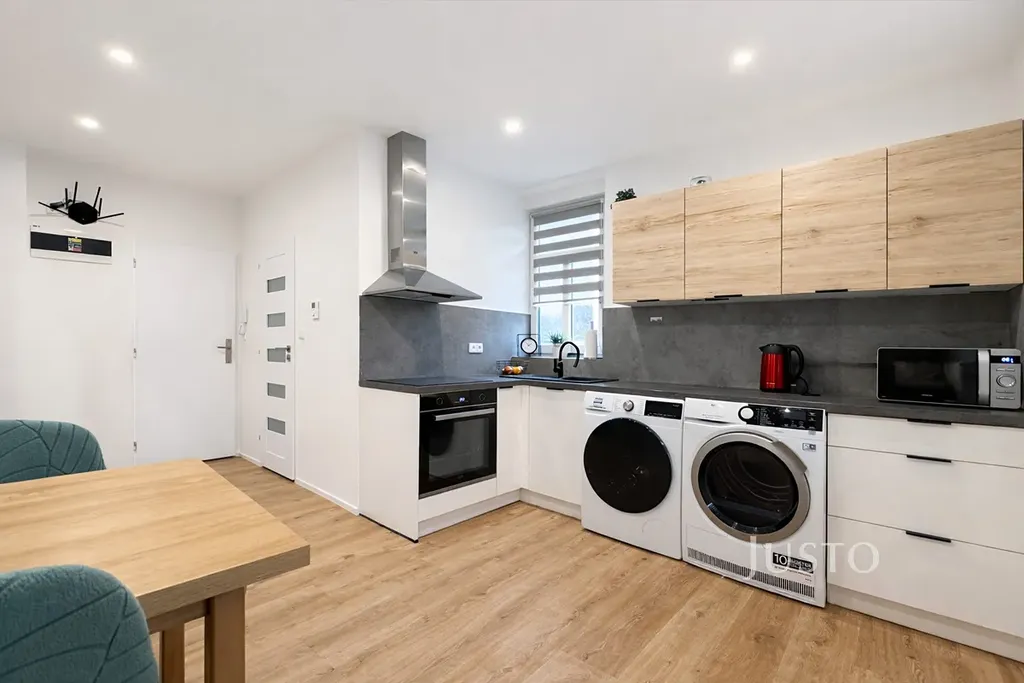 • Kuchyňská část 10,9 m² s moderní kuchyňskou linkou do tvaru L, sklokeramická deska a elektrická trouba,