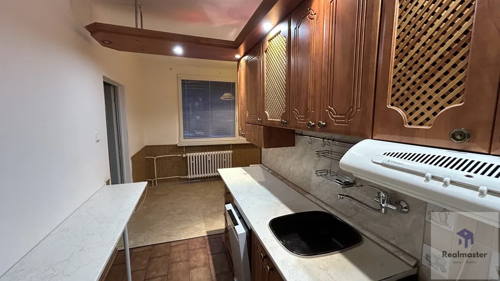 V bytě je kuchyňská linka s plynovým sporákem, kuchyně je do L a je zde místo pro velký jídelní stůl. Koupelna je s hlubokou vanou.