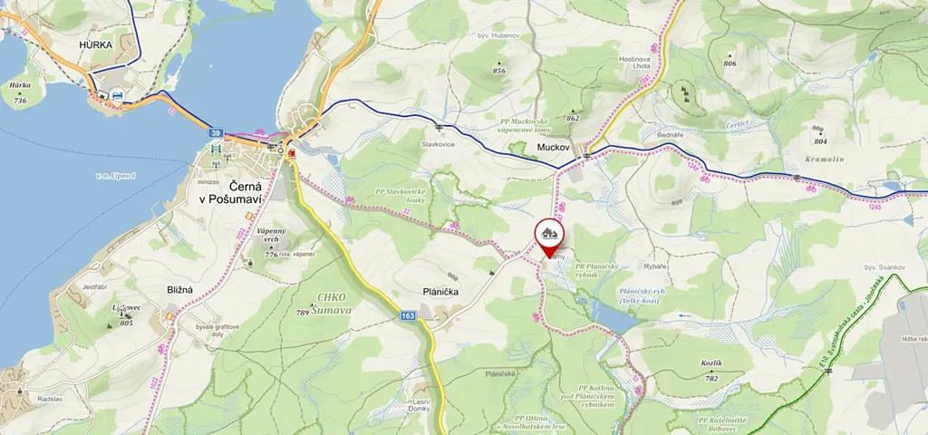 Snadná dostupnost – 3,7 km do centra Černé v Pošumaví, asfaltová příjezdová cesta