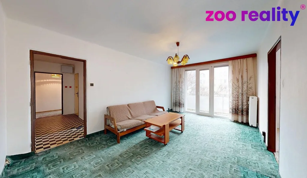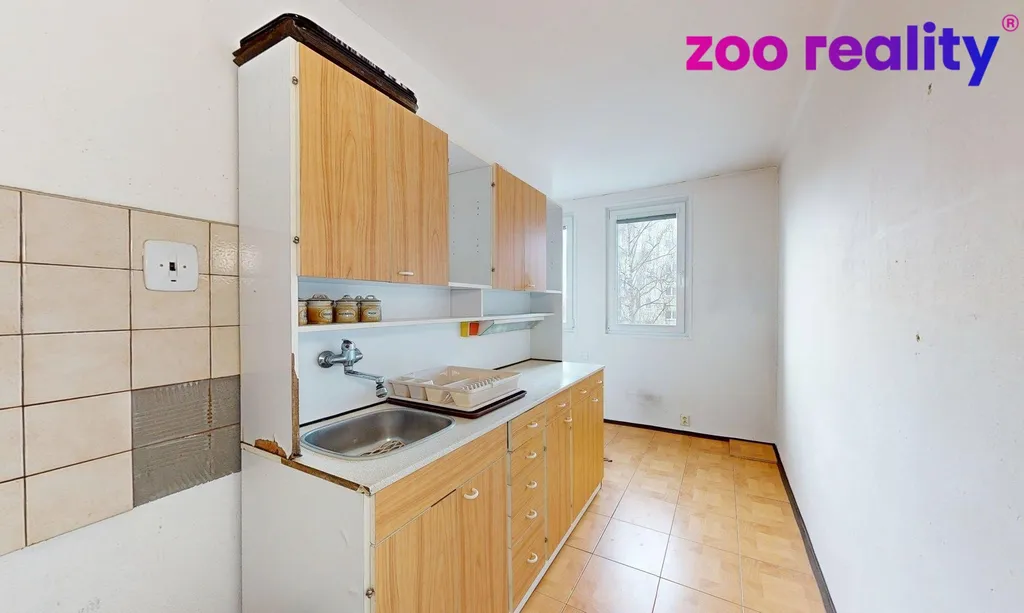 Prodej bytu 3+1 s balkonem (3 m2) a příslušenstvím - sklep (2,5 m2), v osobním vlastnictví, o celkové užitné ploše 67 m2 + balkon. Jednotka se nachází ve 3. patře (4.NP), revitalizovaného panelového domu, s novým výtahem a je původní se starším zděným bytovým jádrem vhodná spíše pro rekonstrukci dle vlastní úvahy. Po určitých úpravách je možné i pozměnit celkovou dispozici bytu, která je současně od zádveří do prvního pokoje (11 m2) hned u dveří a následně do chodby, z které vstupujeme na WC, do kuchyně se samostatným vstupem do koupelny a dále pak do obýváku (18 m2) se vstupem do posledního pokoje (14 m2). Venkovní stěny byly z interiéru v minulosti také dodatečně zaizolovány. Dům je bez dluhů a závazku, nízké měsíční náklady, snížený fond oprav. K objektu náleží také pozemek okolo domu, který je částečně užíván jako vlastní parkoviště. Vybavenost a služby v docházkové vzdálenosti, lokalita nad nemocnicí, více k občanské vybavenosti v odkazech jednotlivých serverů pod inzerátem či internetových mapách. Dispozici bytu si můžete projít i ve virtuální prohlídce s možností zoomu, měření, aj.. Více informací rád sdělím na dotaz, či na prohlídce.