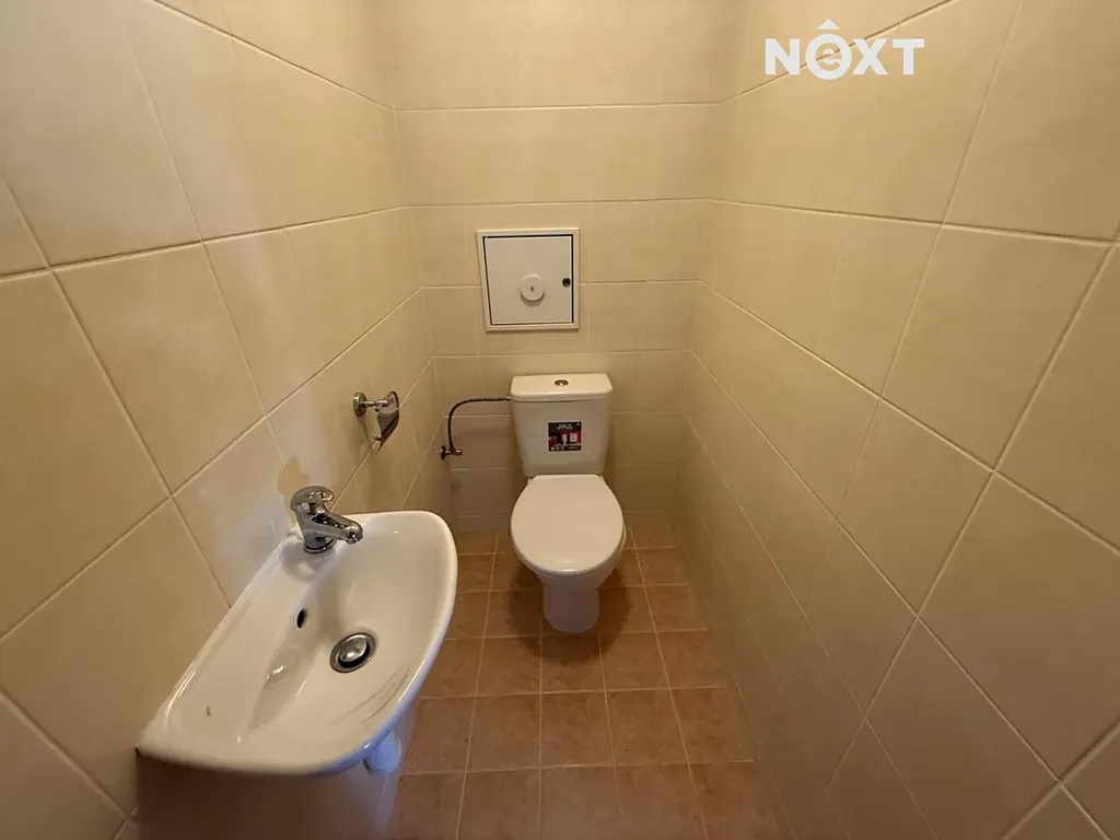 Dispozice bytu: vstupní chodba s vestavěnou skříní, obývací pokoj s kuchyňský koutem (vestavěná lednice a trouba, sklokeramická indukční deska, drtič odpadu - všechny spotřebiče Brandt), ložnice se skříní, koupelna s vanou a vlastním bojlerem, samostatné wc.