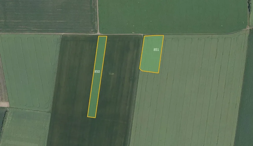 Jedná se o parcelní čísla 850 a 851, oba pozemky vedené jako orná půda. Celková výměra těchto pozemků činí 18 419 m², přičemž celá výměra je předmětem prodeje.
