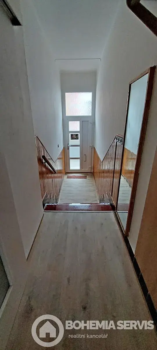 Nabízíme vám rodinný řadový dům 3+1, se zahradou a venkovním krbem s posezením. Ze vstupní chodby jsou vpravo dveře na schody do 1.NP a do kuchyně. Dále z chodby vedou dveře do sklepa, na WC a na zahradu. Z kuchyně je vstup do obývacího pokoje. Kuchyně je vybavena el. sporákem a el. troubou, ledničkou s mrazákem a myčkou nádobí. V mezipatře jsou dveře na menší balkonek s výhledem na zahradu. V 1.N.P. jsou dva pokoje, koupelna a dva atikové přístřešky na odkládání věcí. V domku je ÚT s kotlem na zemní plyn a bílá plastová okna. Podlahy v pokojích jsou dřevěné, v kuchyni PVC a v koupelně keramická dlažba. Nájem je k dispozici okamžitě. Zveme vás na prohlídku.