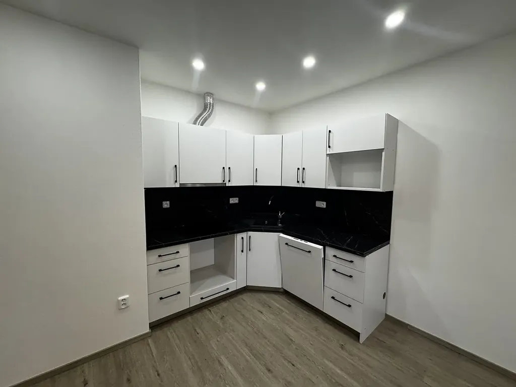 Interiér bytu je řešen velmi moderně, prakticky a nabízí komfortní bydlení. Kuchyňský kout je vybaven myčkou, digestoří indukčním vařičem a troubou. V koupelně s velmi prostorným sprchovým koutem je i toaleta. Světlá ložnice má okno dovnitř areálu nikoliv do ulice a zaručuje tedy klidný odpočinek. V bytě je i komora, kde je kotel, ale slouží také jako úložný prostor navíc, kterého není nikdy dost. O teplo domova se stará podlahové vytápění napojené na plynový kotel.