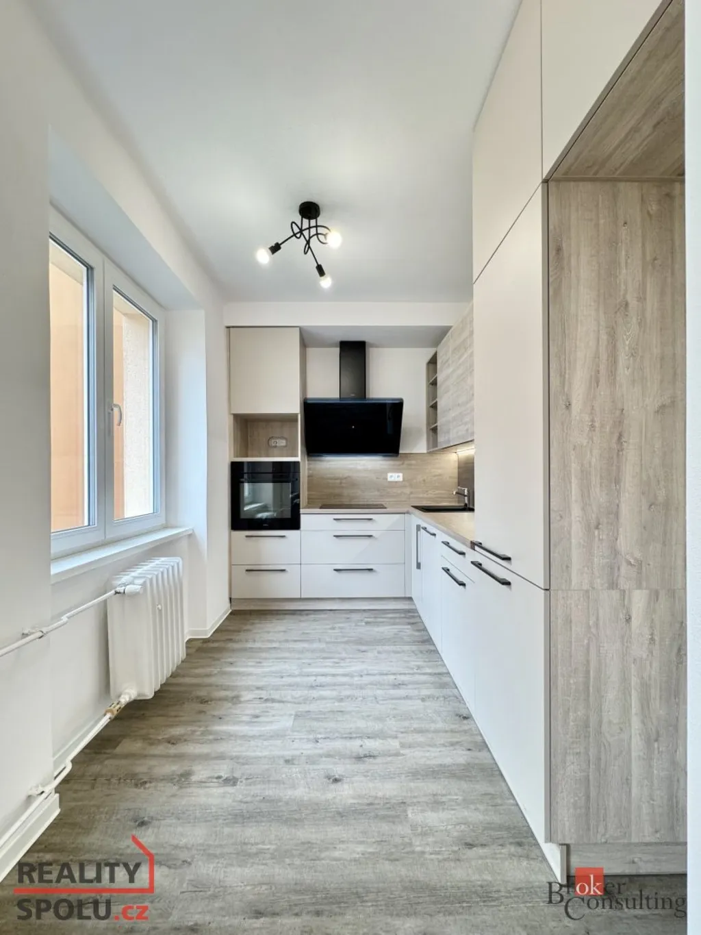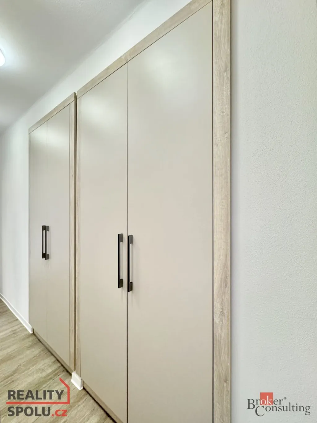Po vstupu do bytu se ocitnete ve světlé chodbě, kde jsou instalovány praktické vestavné skříně. Z chodby se vchází do samostatného pokoje, do prostorné koupelny a do dominanty celého bytu - pokoje s kuchyňským koutem. Zde je přístup do dalšího pokoje. Koupelna je společná s WC a je vybavená vanou a dostatečným místem pro pračku. Nová kuchyňská linka je vybavena spotřebiči (indukční varnou deskou, digestoří, elektrickou troubou a myčkou nádobí). Je připraven prostor pro lednici a mikrovlnnou troubu. Celý byt je bezbariérový a nabízí úsporné bydlení díky energetickému štítku C.