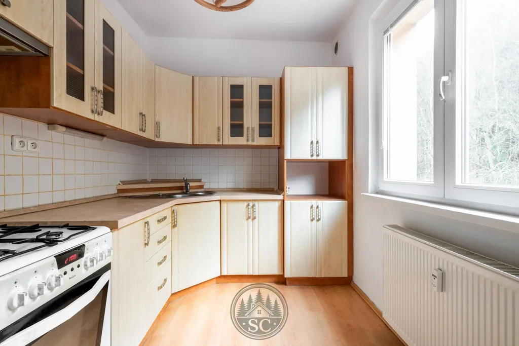 V předsíni a kuchyni je položena plovoucí podlaha, v kuchyni je kombinovaný sporák.