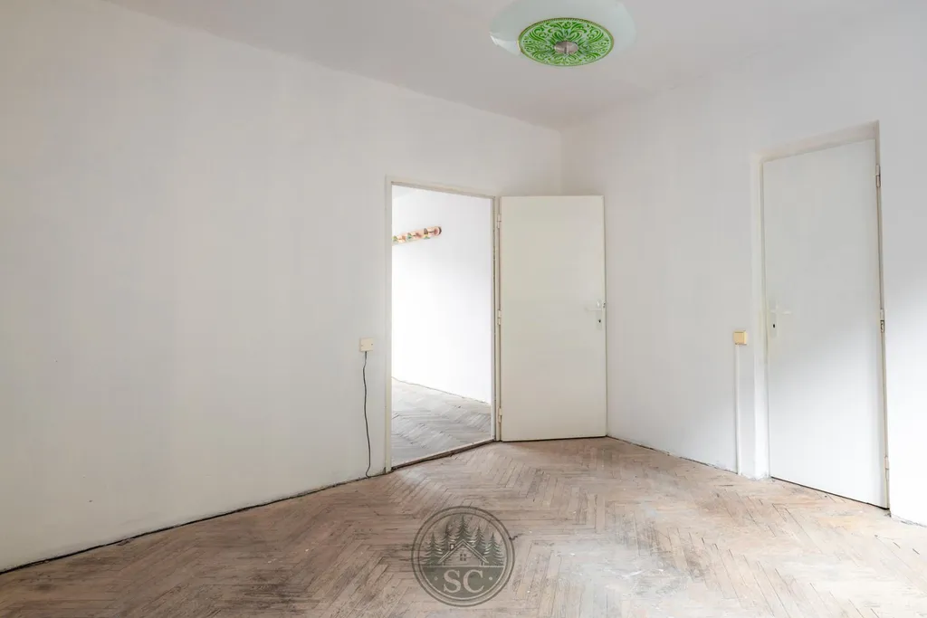 V obytných pokojích jsou parkety z kvalitního tvrdého dřeva, které mají charakter a dlouhodobý potenciál. Po vybroušení a novém lakování by znovu vynikla jejich přirozená kresba a dokázaly by po mnoho dalších let dotvářet atmosféru pokojů.