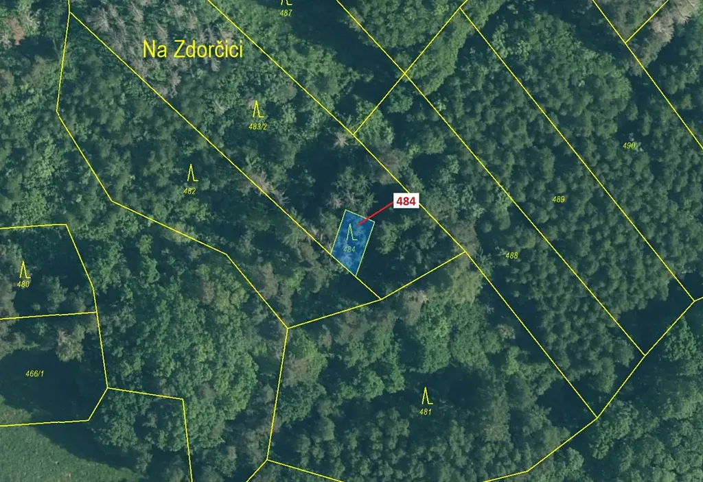 Lesní pozemek o výměře 90 m2, parcelní číslo 484, podíl 1/1, katastrální území Zavlekov, obec Zavlekov, obec s rozšířenou působností Klatovy, okres Klatovy, Plzeňský kraj. Po těžbě.