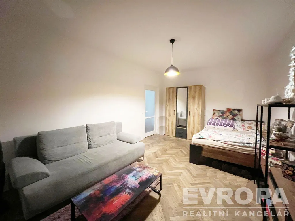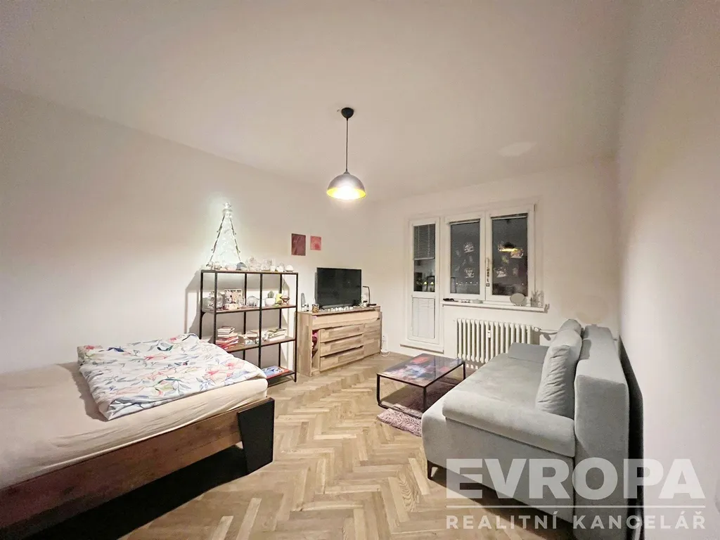 Kuchyň je vybavena praktickou kuchyňskou linkou a kombinovaným sporákem. Hlavní pokoj je světlý a prostorný a nabízí přímý vstup na balkon, který je příjemným bonusem bytu.