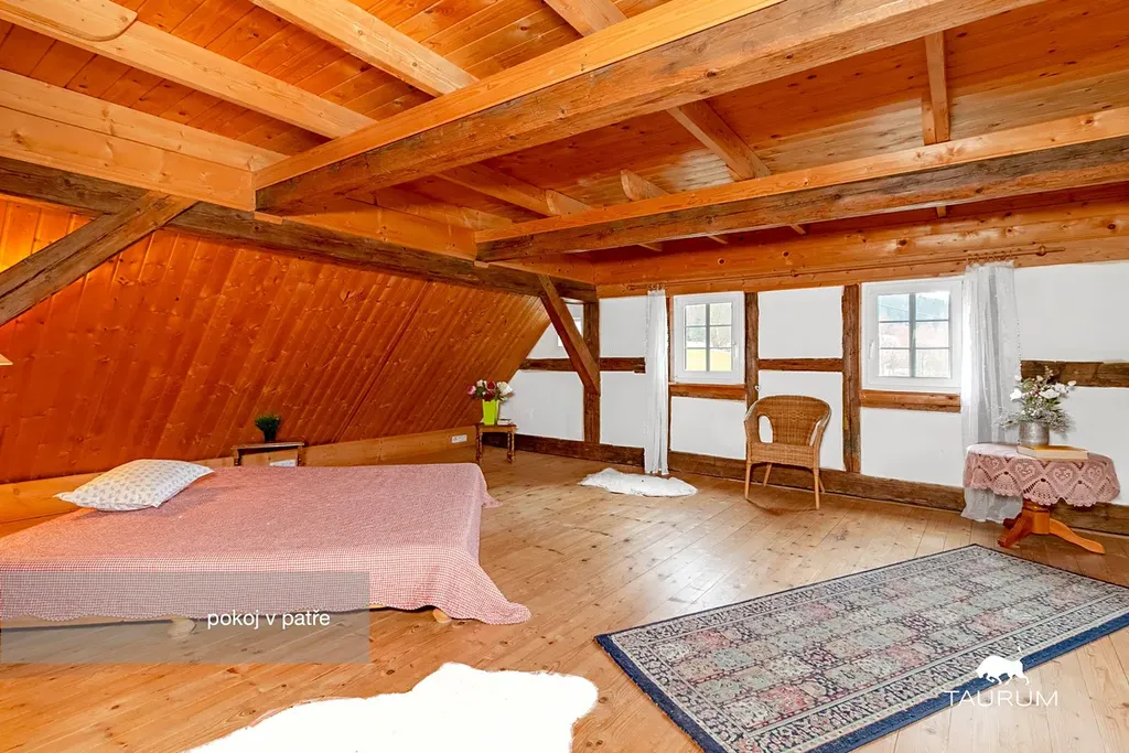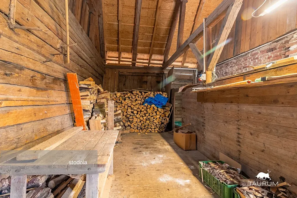 Na dům navazuje stodola, vhodná k uskladnění např. různého nářadí a náčiní, na velké zahradě okolo domu je k dispozici dřevník s velkou zásobou dřeva.
