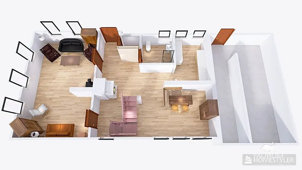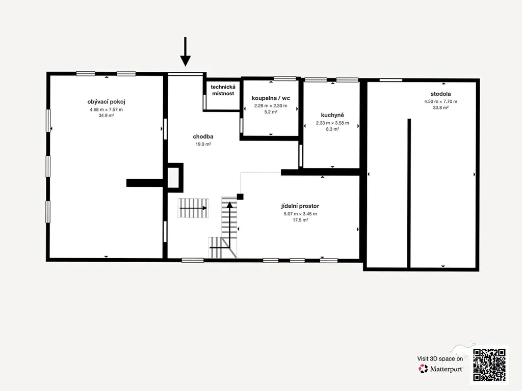 Dnes dům nabízí pohodlné a ihned obyvatelné bydlení. K dispozici je komfortní obývací a jídelní část s navazující kuchyní, koupelna se sprchovým koutem a toaletou a podkroví, které zaujme velkým otevřeným prostorem a navíc dalším samostatným pokojem.