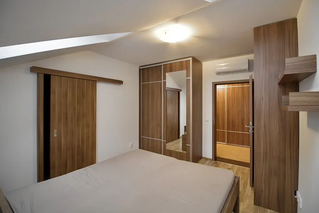 Byt je kompletně zařízený a připravený k okamžitému nastěhování. K dispozici je plně vybavená kuchyňská linka s vestavěnými spotřebiči, včetně trouby a myčky. Součástí vybavení je dále lednice, pračka a sušička, manželská postel, dvě televize a množství vestavěných skříní v ložnici, dětském pokoji i na chodbě. V jedné z obytných místností je instalována klimatizační jednotka, která zajišťuje příjemný komfort i během letních měsíců. Balkon je vybaven venkovním nábytkem a spolu s infrasaunou, která je součástí bytu, vytváří ideální prostor pro maximální relaxaci po náročném dni.