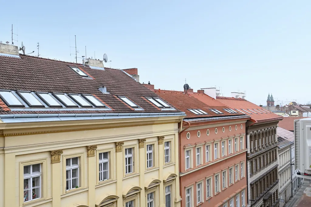 Zcela nová rekonstrukce bytu 5. NP v klidné ulici kousek od parku Petřín. Okna východním směrem, opatřena vnějšími elektrickými roletami.