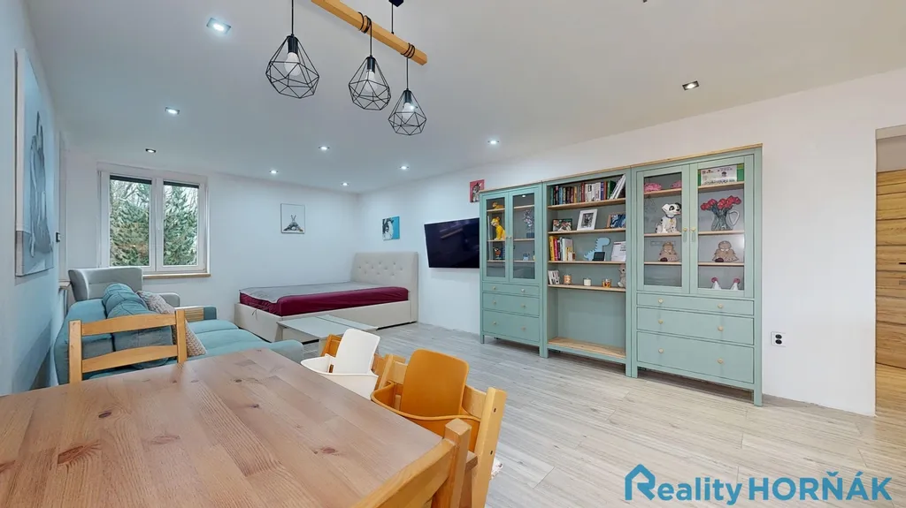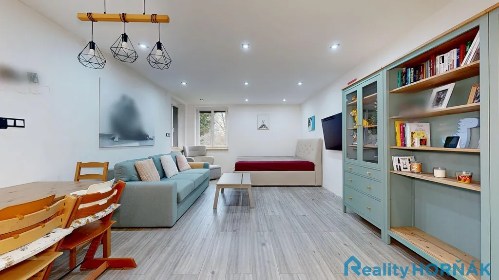 V přízemí je dokončena dispozice 2+KK se sociálním zázemím. Dispozice zahrnuje obývací pokoj s kuchyňským koutem, ložnici, koupelnu, samostatné WC, předsíň, chodbu, šatnu a spíž. Tato část domu je již zcela plnohodnotně obyvatelná. Kuchyňská část je vybavena nadstandardní kuchyňskou linkou s kvalitními materiály, vestavěnými spotřebiči. Kuchyně byla realizována jako finální řešení, nikoliv jako provizorium.