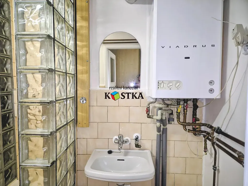 Velká kuchyně s hezkou kuchyňskou linkou je propojená dvoukřídlými dveřmi s prostorným obývacím pokojem. Ložnice je velká a vejde se sem nejen manželská postel, ale určitě i velká šatní skříň a pracovní stůl. Koupelna společná s toaletou je takřka v původním stavu, ale čistá a funkční. Vytápění bytu je vyřešeno vlastním plynovým kotlem s ohřevem teplé vody.