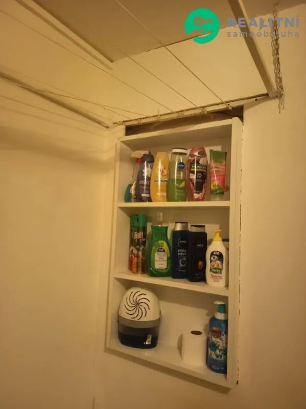 Koupelna: WC kombi, rohová vana, umyvadlo se skříňkou, zrcadlová skříňka, police na míru