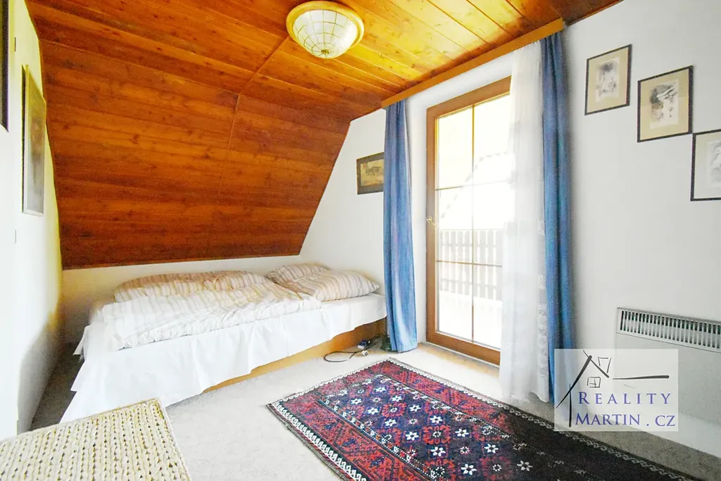 • V patře jsou k dispozici dvě ložnice s výstupem na prostornou lodžii a úložné prostory.