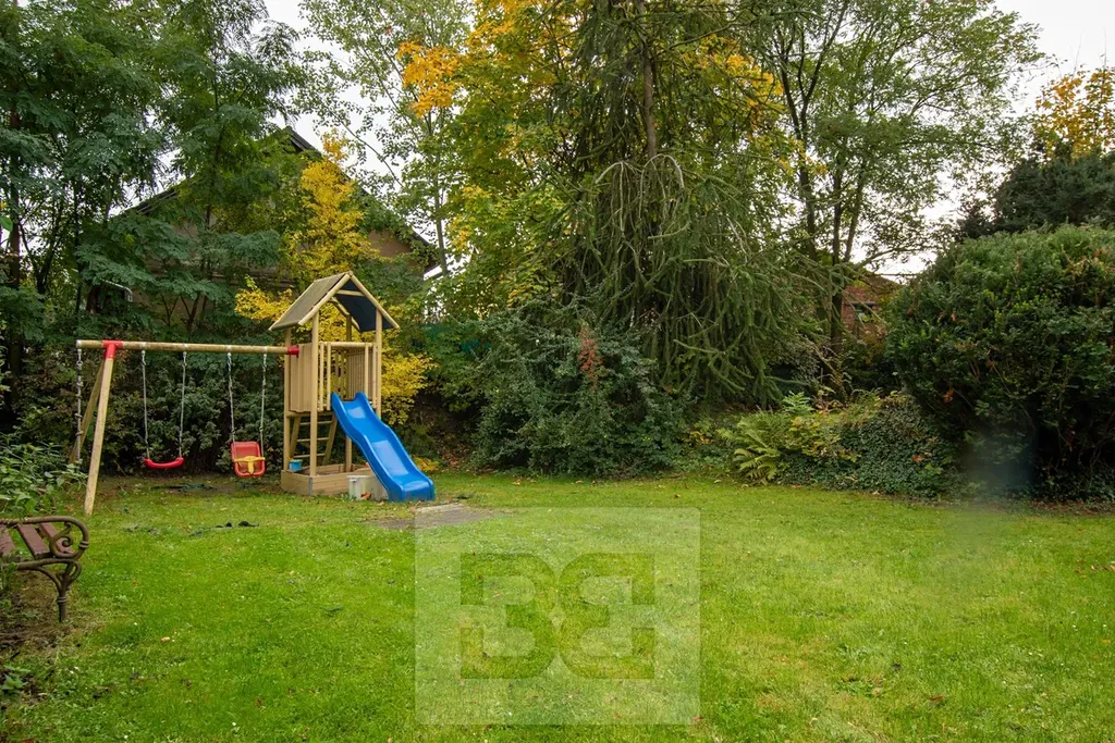 Zahrada nabízí dostatek soukromí i prostoru pro volnočasové aktivity – k dispozici je altán s posezením a grilem, dětská prolézačka, trampolína, zahradní nářadí a prostorná kůlna pro uskladnění dalších věcí.