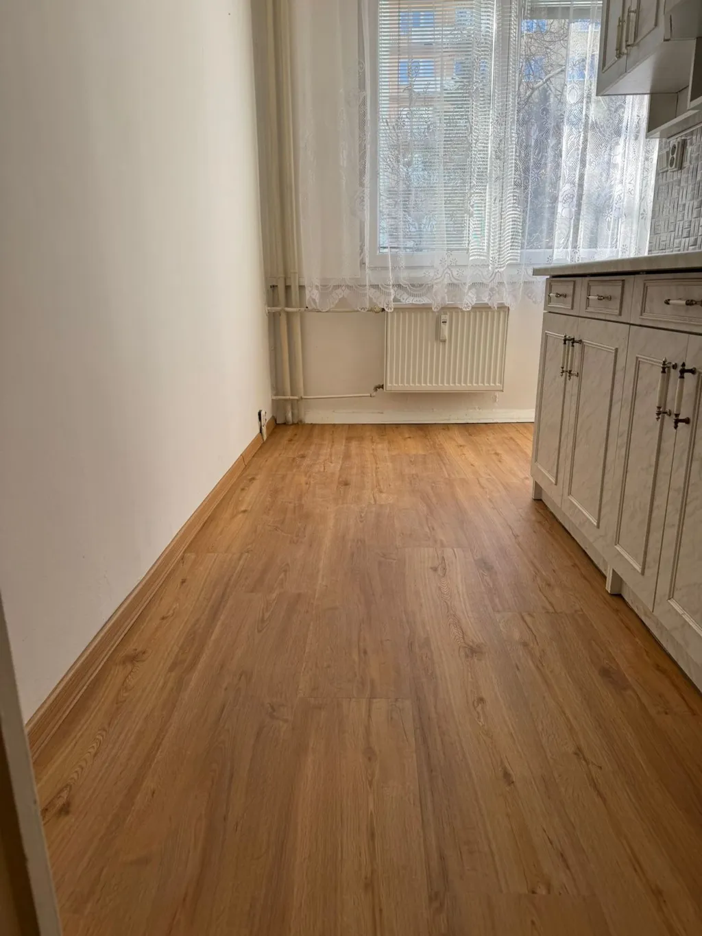 Byt je prostorný a světlý, v původním udržovaném stavu, zůstává v něm kuchyňská linka s plynovým sporákem a vestavěná skříň.