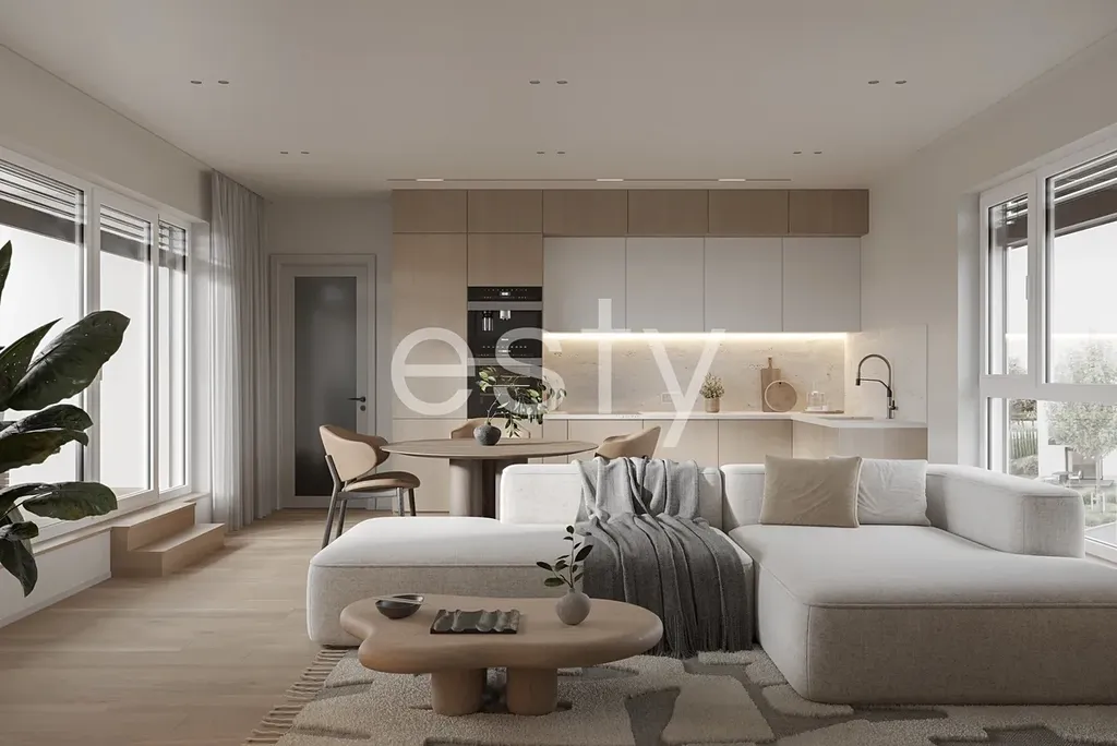 Byt má ve standardním provedení vinylové podlahy s dekorem dřeva či WPC terasy v barvě kávy. Plastová okna s trojskly budou vybavena venkovními žaluziemi a lokálním elektrickým ovládáním. Vjezd do areálu bude na dálkové ovládání a celý prostor bude připraven pro zřízení kamerového systému. Každý byt můžeme doplnit o chytrou domácnost a v horních podlažích bude příprava na klimatizaci. Součástí dodávky není nábytek a kuchyňská linka.