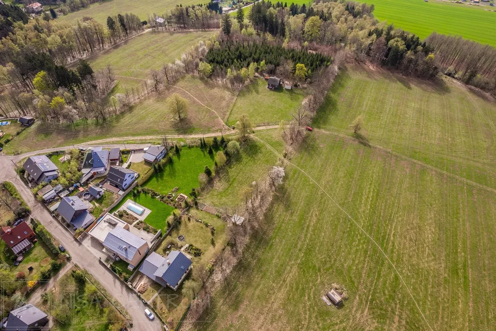 V sousedství této stavební parcely jsou jen již louky a otevřená krajina bez možnosti budoucí zástavby. Z tohoto jižně orientovaného pozemku na vrcholu kopce Vrkoslavice je krásný výhled na protější Ještědsko - kozákovský hřeben i na vrcholky kopců v Českém ráji.