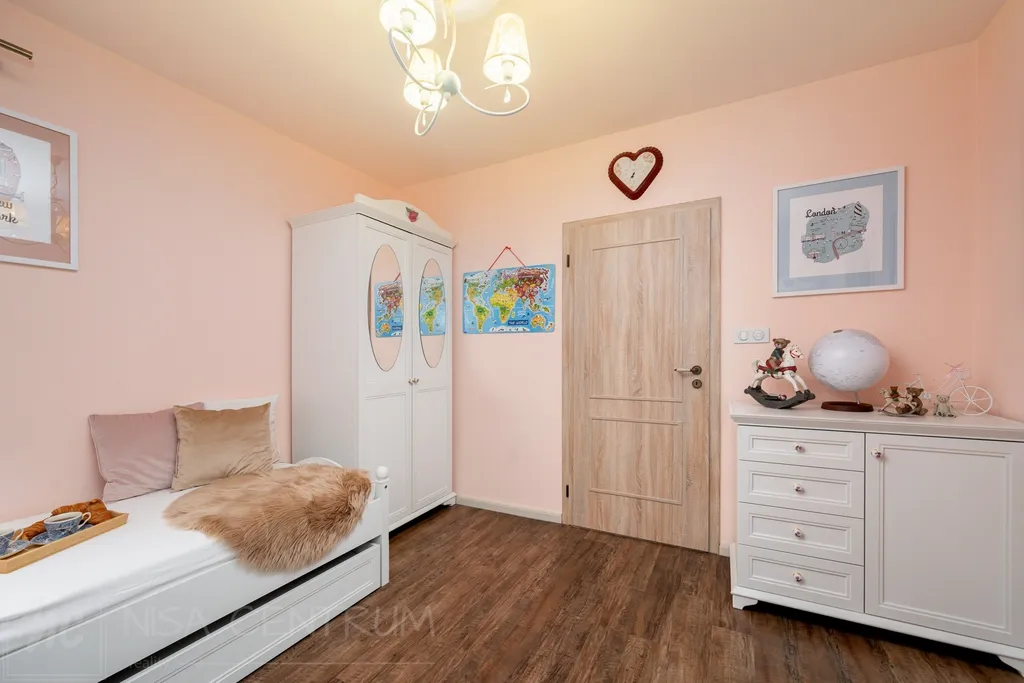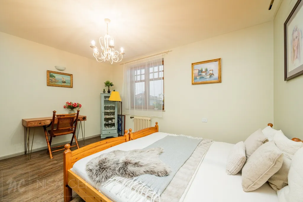 Praktická a účelně navržená dispozice, která je funkční pro život a plní každodenní potřeby jak početné rodiny, tak jednotlivce. Dispozici domu tvoří velkoryse řešený obývací pokoj s dostatkem místa pro velký jídelní stůl, samostatná kuchyně vybavená těmi nejlepšími spotřebiči, ložnice, dva dětské pokoje z čehož jeden má vlastní koupelnu se sprchovým koutem a toaletou, dále je zde velká centrální koupelna s vanou i sprchovým koutem, toaletou i bidetem, předsíň, technická místnost a samostatná toaleta. Z obývacího pokoje je přístupná galerie, která slouží jako odpočinková místnost a je možné ji předělat na tři pokoje. O dostatek úložných prostor se starají dvě půdy. Dále patří k domu garáž pro jedno auto se sekčními vraty a zahradní sklad. Dům má dvě kryté terasy.