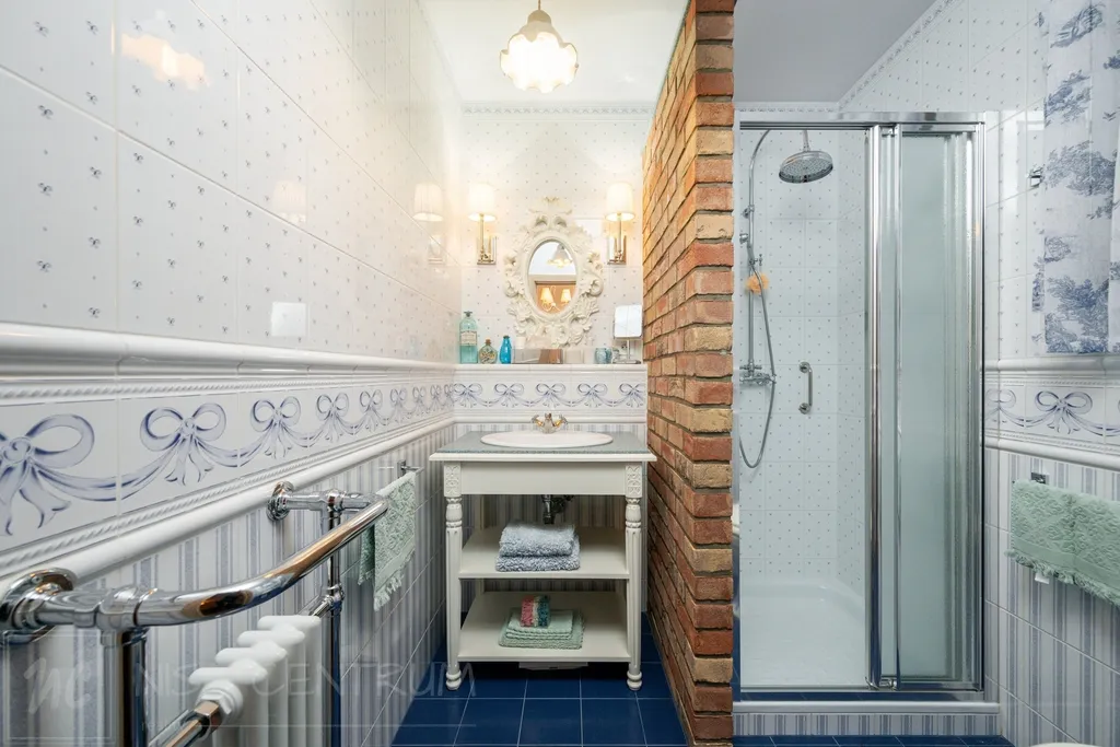 V interiéru byly použity zahraniční materiály, ať už se jedná o na zakázku vyrobené litinové radiátory, švýcarské podlahové topení, v koupelnách jsou anglické topné žebříky, v koupelně u dětského pokoje je viktoriánská toaleta. Zásuvky a vypínače jsou sladěny s vybavením v místnosti. Celý dům je vybaven předokenními žaluziemi na dálkové ovládání, okna mají žulové parapety. V obývacím pokoji je komín Schiedel, který je připravený na instalaci zděného krbu.