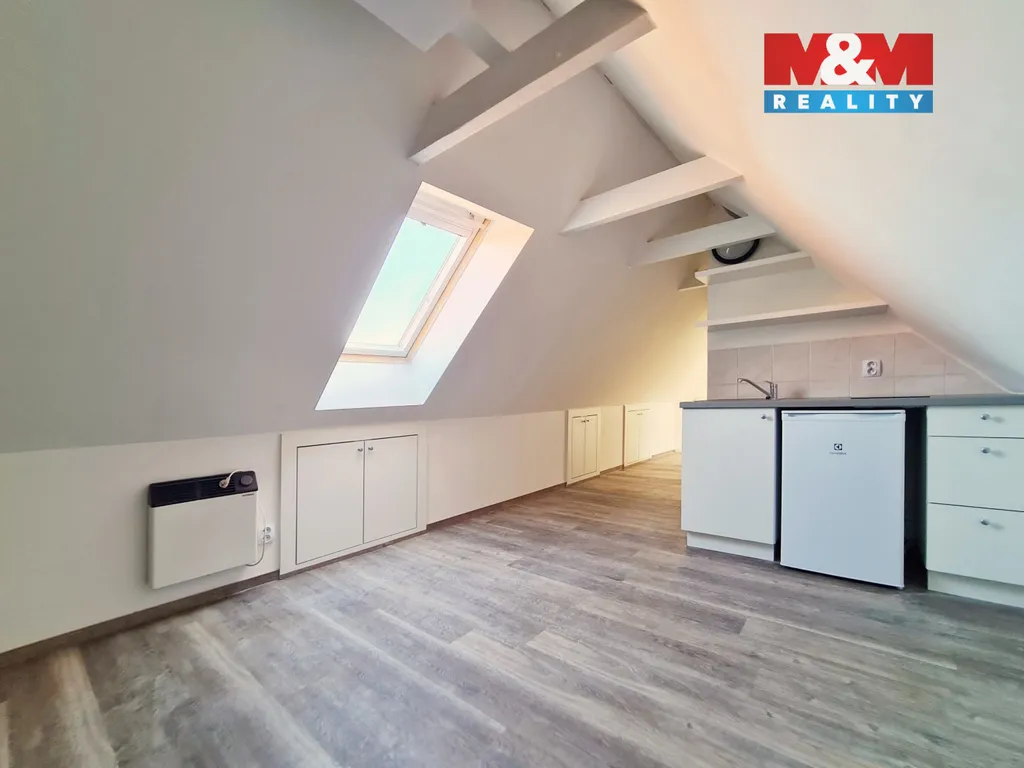 Nabídka prodeje podkrovního bytu 1+kk v osobním vlastnictví o celkové výměře 30 m² v samotném centru Berouna. Vstup do domu z ulice Hradební. Byt prošel rekonstrukcí v roce 2021. Plovoucí vinylová podlaha, střešní okna, izolovaná střecha, úložné prostory ve snížených stěnách bytu. Kuchyňská linka s elektrickou varnou deskou, lednička, elektrické přímotopy i v koupelně, bojler pro ohřev teplé vody. Koupelna s vanou, pračkou, toaletou a umyvadlem. Veškerá občanská vybavenost v místě, výborná dopravní dostupnost. Byt je v současnosti pronajatý. Pro více informací a domluvení prohlídky kontaktujte makléře.