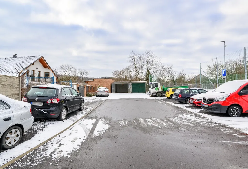 Garáž může sloužit pro parkování auta nebo jako skladovací prostor, zároveň je před vjezdem dostatek místa i další parkovací stání. Zastavěná plocha garáže je 21 m². Garáž je vyklizená a připravena k okamžitému využití.