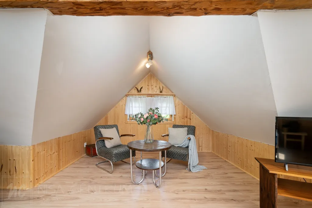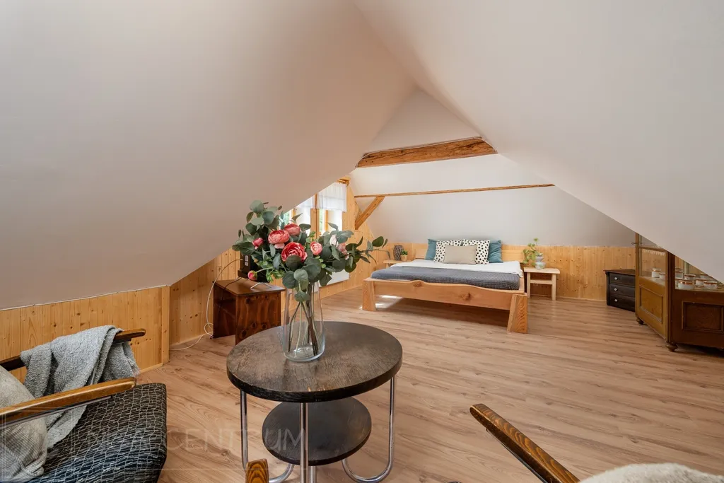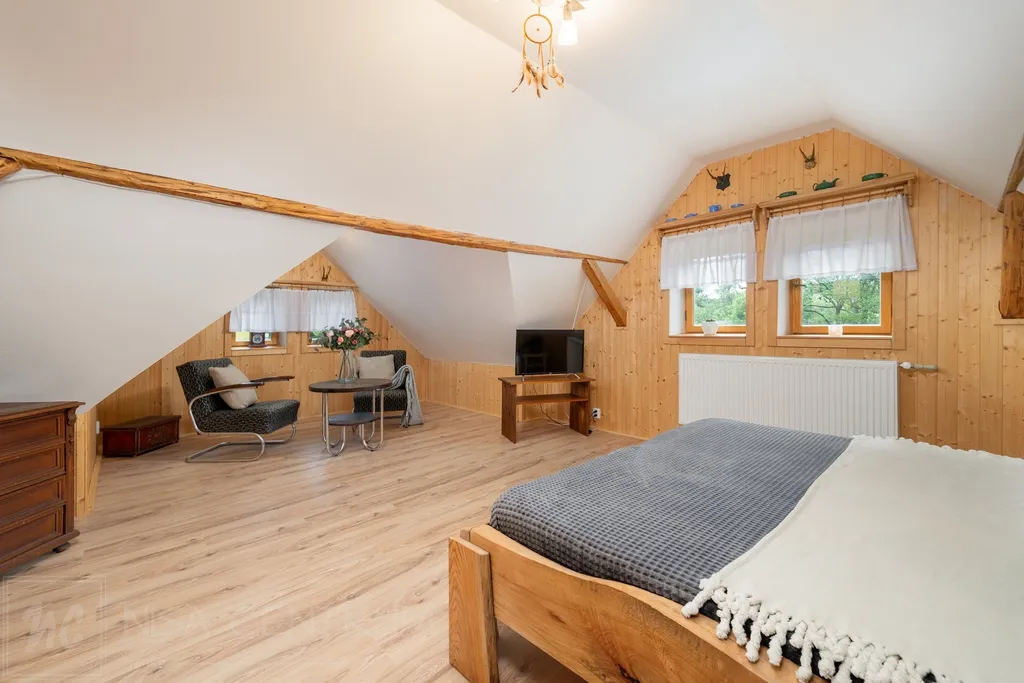 Na pozemku o rozloze 3 096 m² se nachází pergola s kůlnou, koupací jezírko, sauna, altán, terasovitá zahrada a část vlastního lesa. Tato nemovitost nabízí ideální kombinaci komfortního bydlení a relaxace v přírodním prostředí. Díky své poloze je vhodná jak pro trvalé bydlení, tak pro rekreační účely.