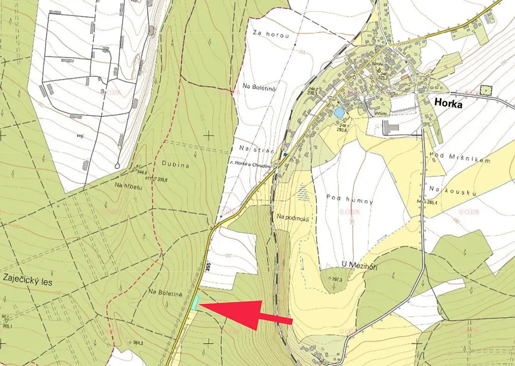 Prodáme pozemek, louku (formálně ornou půdu) s vlastním vjezdem z asfaltové silnice v k.ú. Horka u Chrudimi, parc.č. 359/2, 344/5 a 749/1.