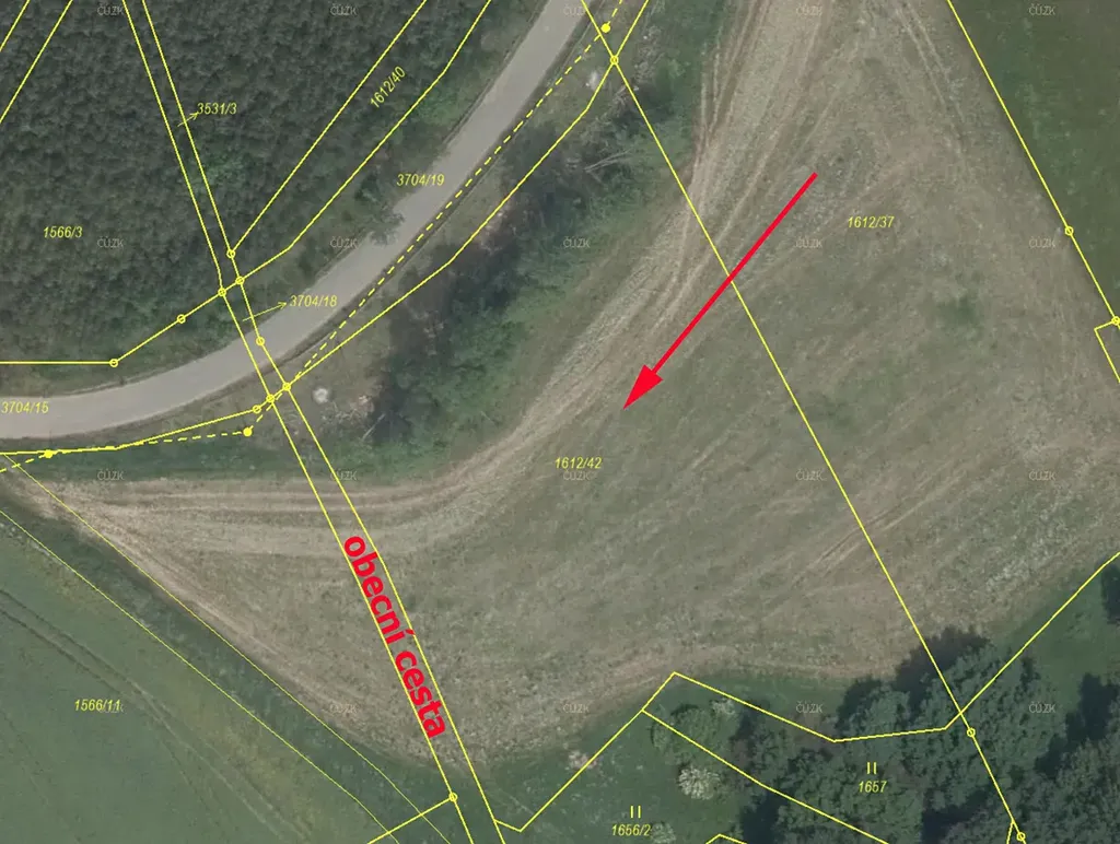 Prodáme pozemek (orná půda) s částečným porostem stromů (možno vytěžit), přímo přiléhající k místní asfaltové silnici a k obecní polní cestě v k.ú. Dubnice pod Ralskem, parcela č. 1612/42.