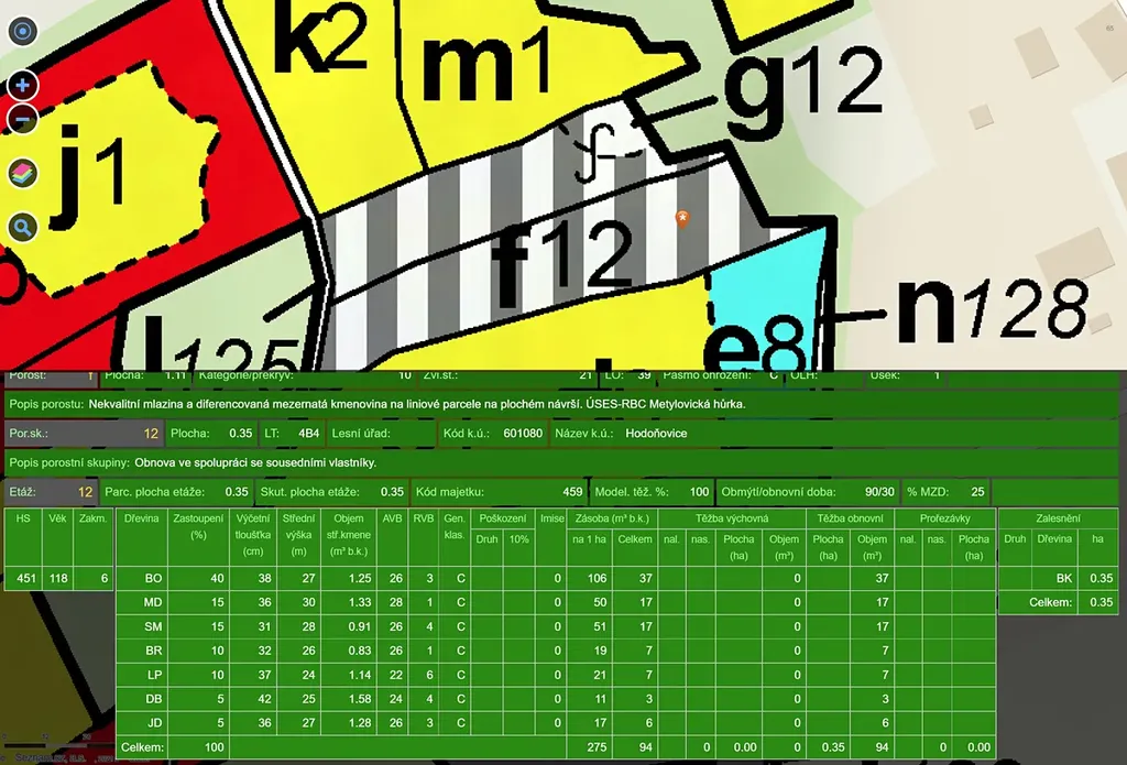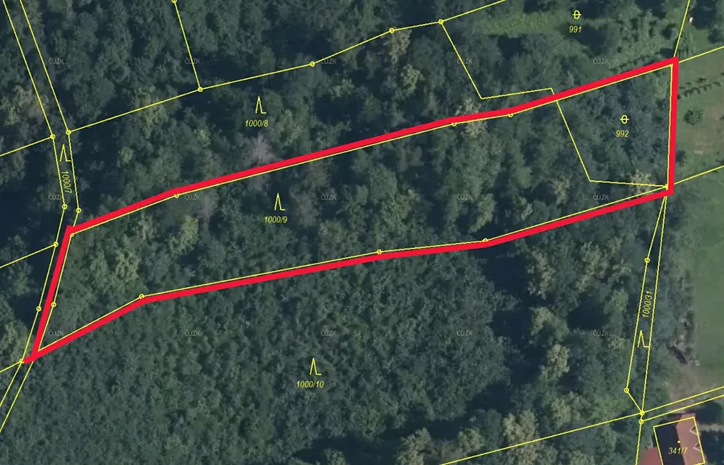 Prodáme les v k.ú. Hodoňovice, parcely č. 1000/9 a 992.
