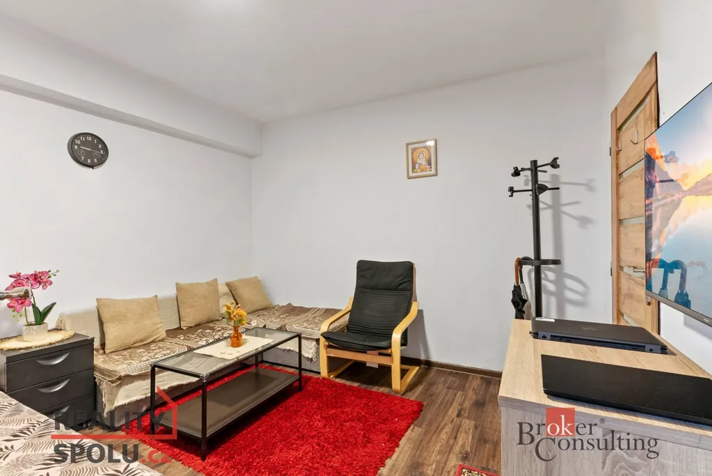 Byt se skládá ze vstupní chodby, ze které je přístup do jednotlivých místností. K dispozici je kuchyň, prostorný obývací pokoj, samostatná ložnice, koupelna a oddělené WC. Interiér je laděn do příjemného, ale moderního, vkusného stylu s důrazem na dřevěné prvky, které bytu dodávají útulnou atmosféru. Prostor působí čistě a udržovaně. Součástí je také sklepní kóje o velikosti 5m2.