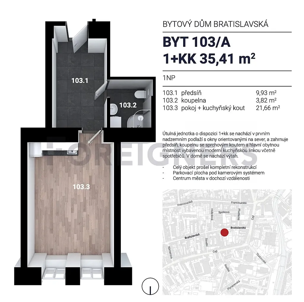 Pronájem bytu 1+kk, Brno, Bratislavská, 35 m2 (ID: 2505283)