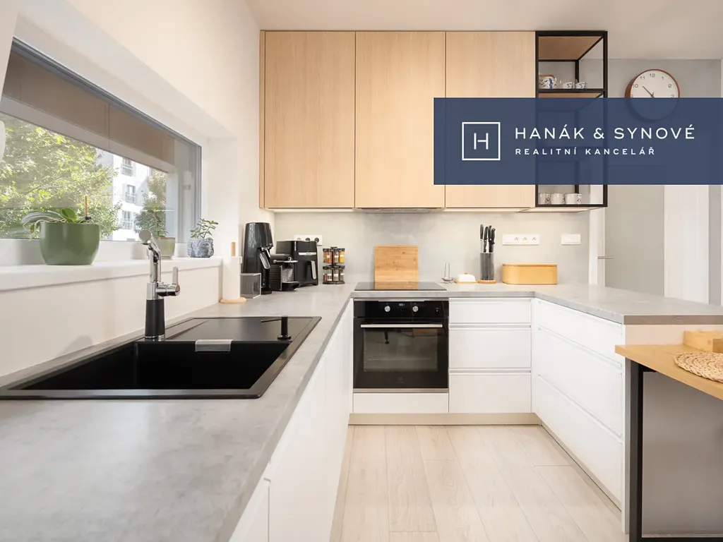 Byt je zařízený ve vysokém standardu a je nabízen částečně zařízený – kuchyňská linka se spotřebiči (indukční varná deska, digestoř, horkovzdušná trouba, myčka, vestavěná lednice s mrazákem, pračka), jídelní stůl se židlemi.