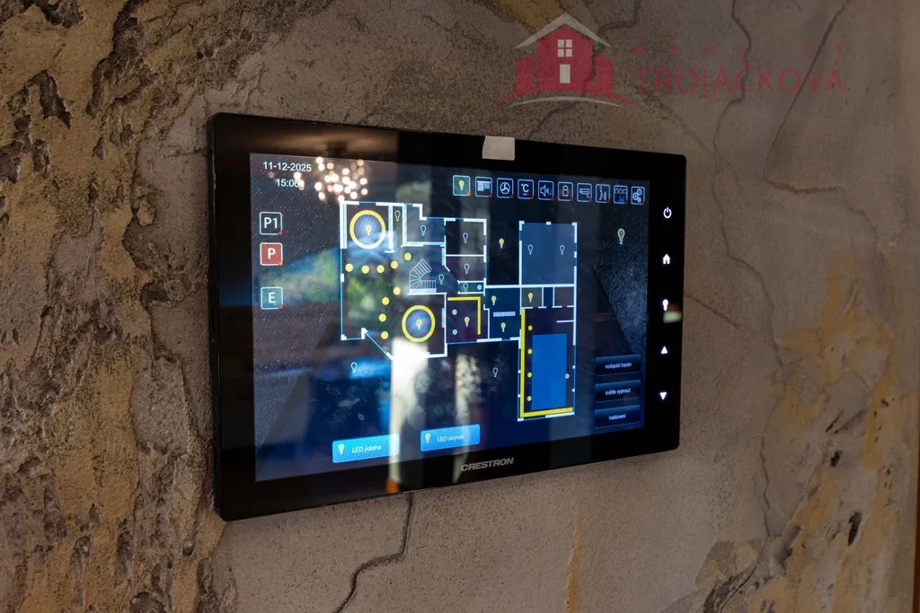 Garážová vrata i hlavní brána mají dálkové ovládání. Vytápěné svody a okapy DEVI. Vytápění zajišťuje tepelné čerpadlo NIBE 17kW (vrt 2x 140 m). Voda je obecní, (rozvody v mědi, 2x 10 m3 zásobník na zalévání), ČOV Topas 5. Na střeše garáže je umístěna fotovoltaická elektrárna o výkonu 9,8 kW s bateriovým uložištěm. Součástí pozemku je nabíjecí stanice pro automobily. Měření a regulaci vody, vytápění, elektřiny a bazénu, stejně jako zabezpečení domu a kamerový systém lze ovládat na dálku prostřednictvím mobilních aplikací.