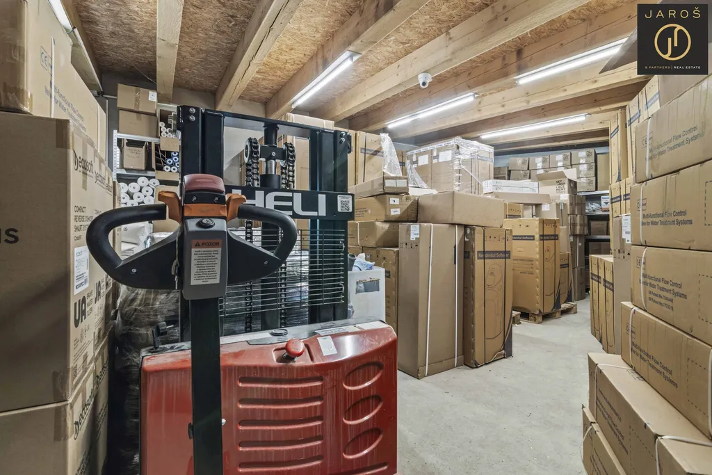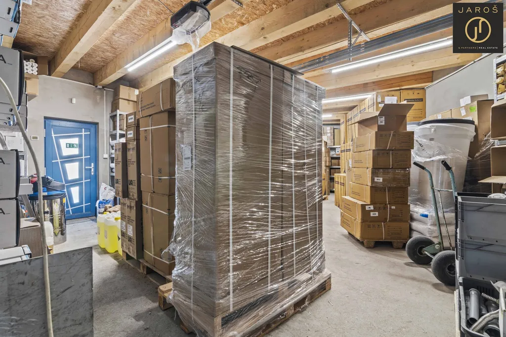 Po vstupu do budovy Vás uvítá příjemná recepce s presetntačním prosotorem (29 m2) na kterou navazuje zasedací místnost 15 m2. V pravo od recepce pak příruční dílna 40 m2, zateplený sklad 55 m2. Skladovací prostory rozšiřuje za budou skrytě umístěný 40" kontejner aktuálně využívaný jako archiv. Umístění kontejneru je zakresleno v přiloženém pasportu stavby. Spodní patro doplňuje kuchyňka a sociální zařízení se sprchou.
