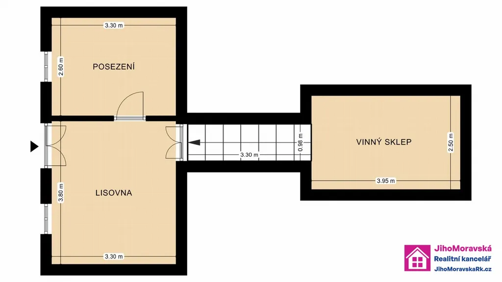 Celková plocha pozemku je 99 m2. Užitná plocha vinného sklepa je 34 m2.