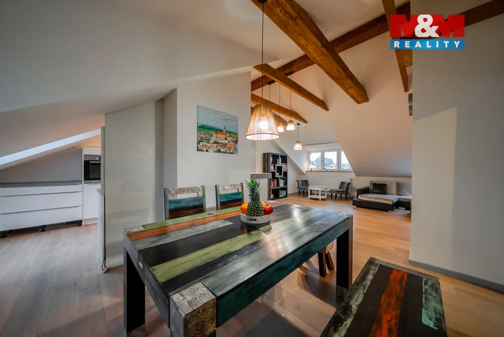 Nabízíme vám jedinečnou bytovou jednotku 3+kk v atraktivní části Mikulova na ulici Žižkova. Nová nadstavba bytového domu vznikla s použitím nadstandardních materiálů a důrazem na vzdušnost a komfort. Celková plocha přes 140 m² nabízí velkorysý prostor pro život. Dominantou bytu je prostorný obývací pokoj s kuchyňským koutem, přiznanými trámy a krásnou atmosférou.