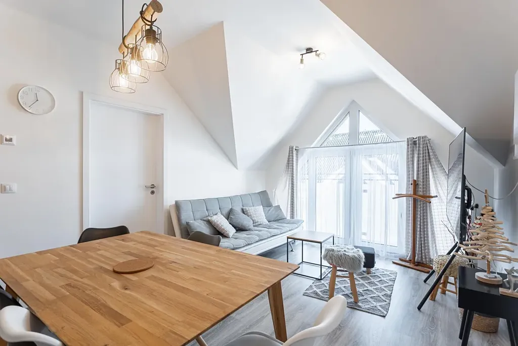 S radostí nabízíme nadstandardní, plně zařízenou bytovou jednotku dispozice 3+kk s krásnými výhledy na vrcholy Klínovce a Fichtelbergu v komorním projektu v Loučné pod Klínovcem.