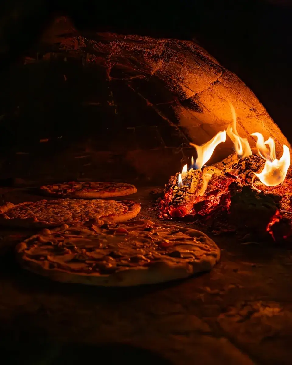 • Skutečná dřevěná pec na pizzu.