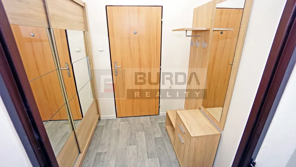 V bytě je kuchyňská linka v odstínu dub sonoma, s nerezovým dřezem a keramickým obkladem. Před kuchyňskou linkou je konzumní pult se dvěma židlemi. V pokoji je nové stropní svítidlo s dálkovým ovladačem.