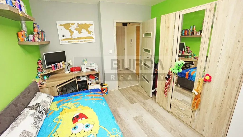 Nábytek v obývacím pokoji lze zanechat, v ložnici lze zanechat postel a velkou šatní skříň, v dětském pokoji může zůstat velká skříň, ostatní nábytek v dětském pokoji nezůstane, rovněž nezůstane pračka, botník a věšáková stěna v chodbě.