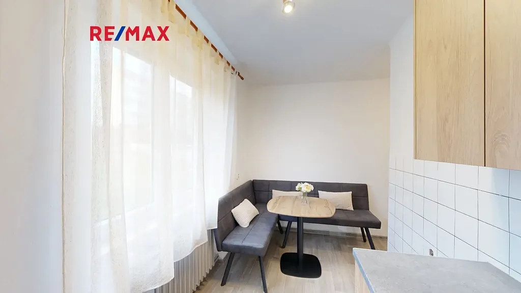 Byt je částečně vybaven: nová kuchyňská linka, sporák, nová sedací souprava do kuchyně včetně jídelního stolu a předsíňová stěna.